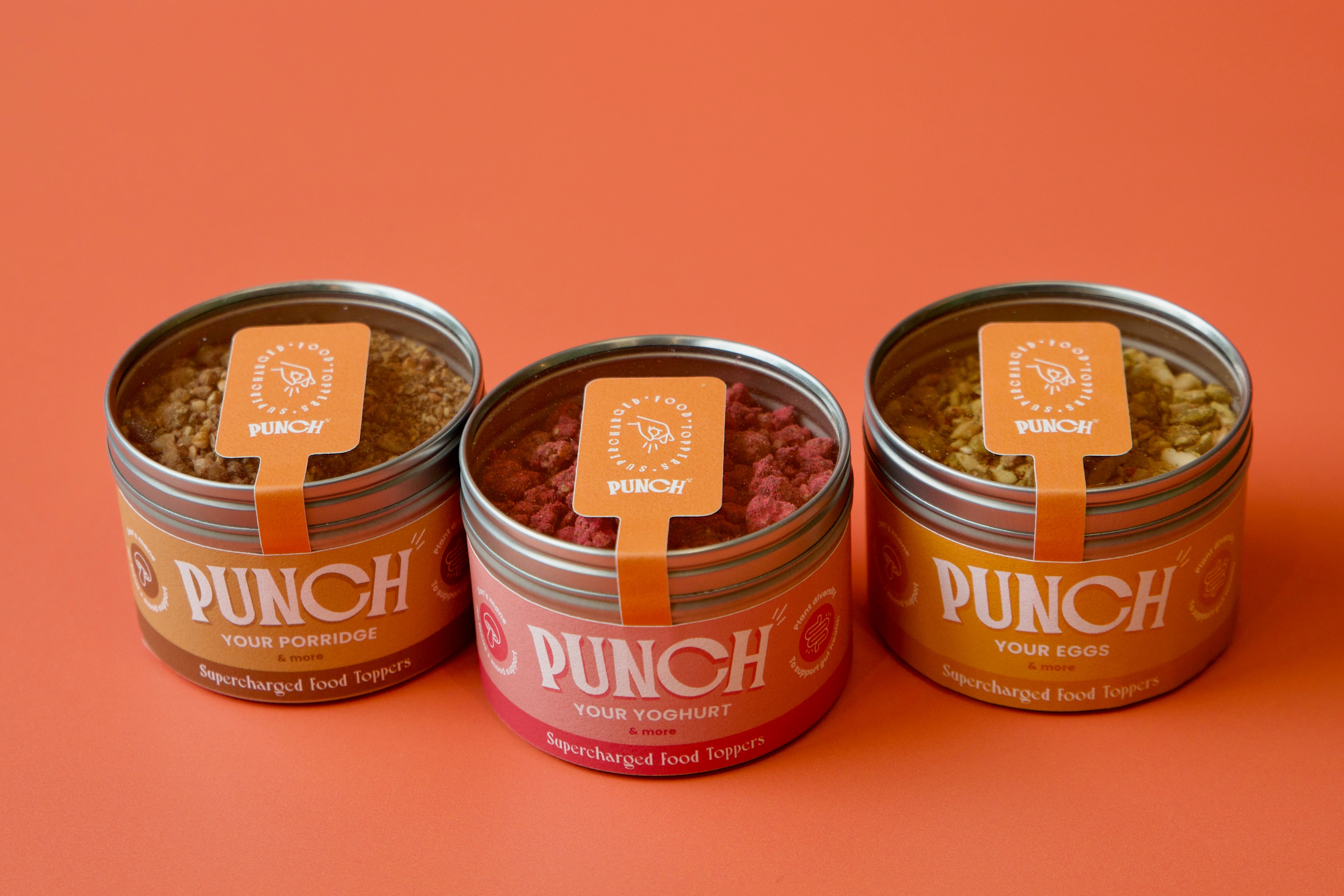 Pick from one of our four blends: PUNCH your Eggs / PUNCH your Salad / PUNCH your Porridge / PUNCH your Yoghurt.