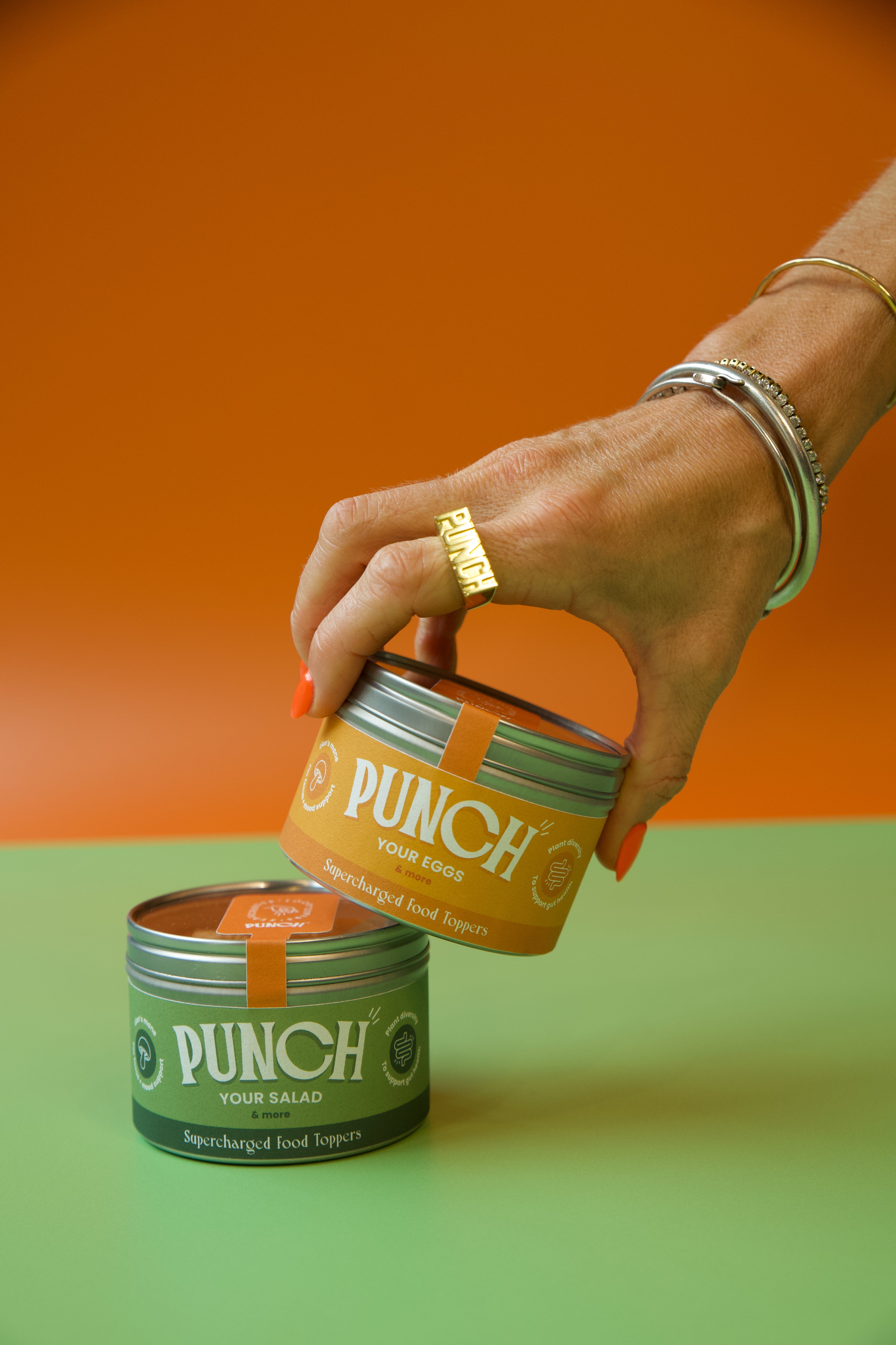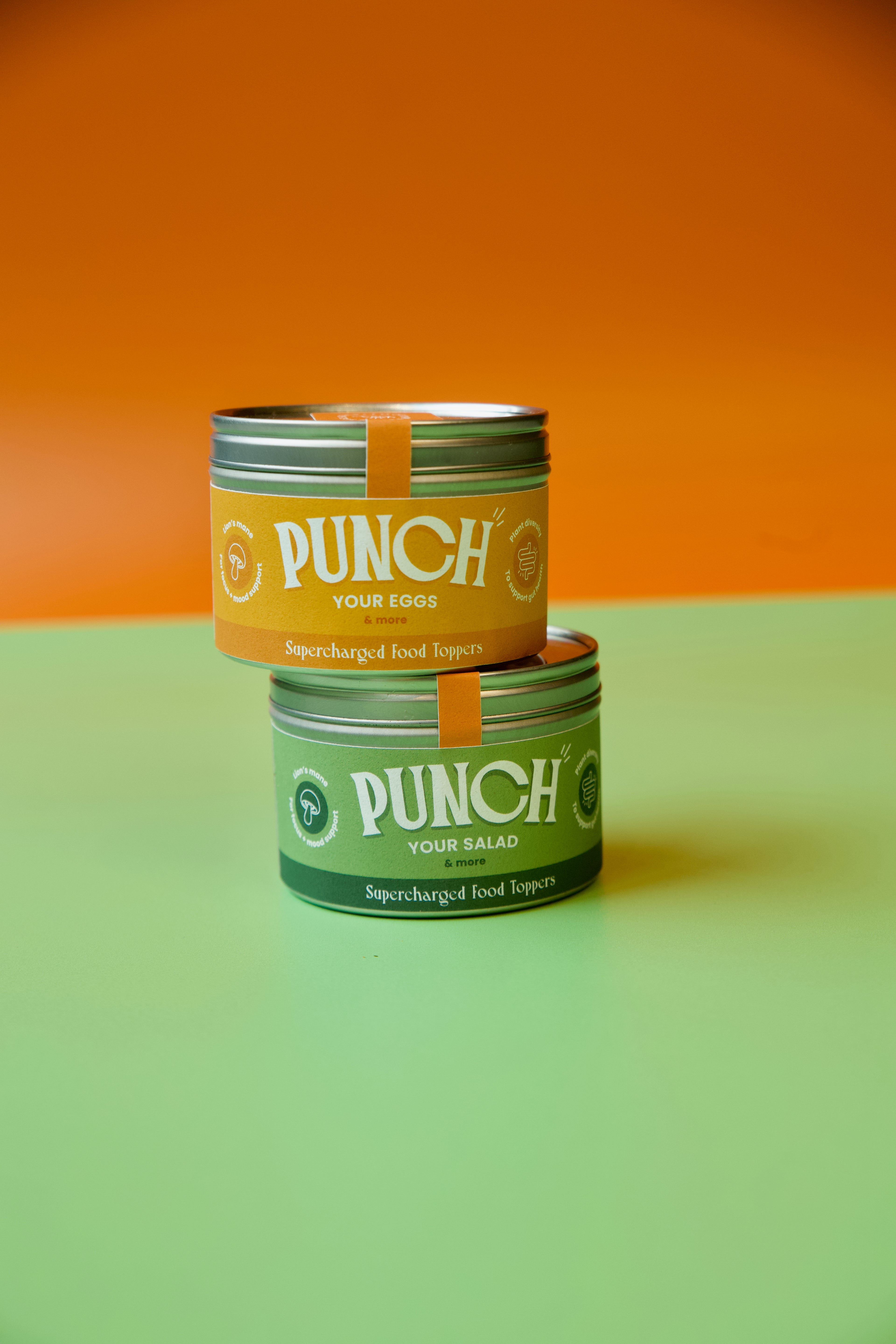 Our 2 savoury flavours: PUNCH Your Eggs (the spicy one) + PUNCH Your Salad (the savoury one).